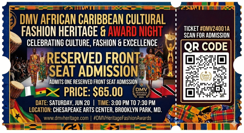 Access to the DMV African Caribbean Cultural Fashion Heritage & Award Night 5.0 event including fashion shows, award presentations, and cultural performances.